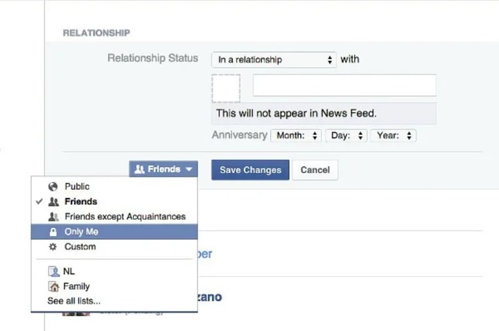 There are a couple of ways to change your Facebook relationship status without alerting all 300 of your friends. One option is to go to the "About" section on your timeline and scroll to the "Relationship" section. Hit "Edit" on the upper right corner, and change your privacy settings to "Only Me." Then change your status, and hit save. The second option is for when you don't want any relationship status whatsoever to appear on your profile.