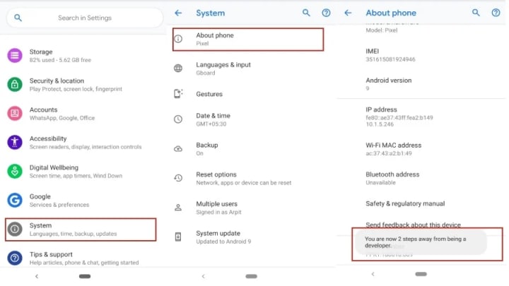 - Enable USB Debugging in developer options