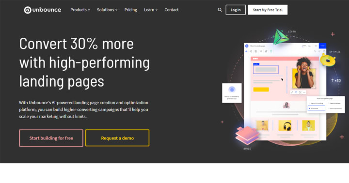 Unbounce specializes in crafting powerful landing pages and websites. To begin, you answer a few questions and provide a project description. Within this project, you can design a specific landing page or an entire website, all powered by advanced artificial intelligence (AI) technology.