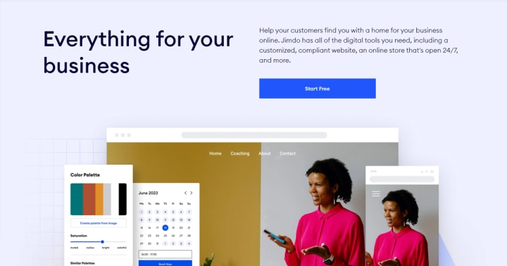 However, it's important to note that Jimdo's AI designs are somewhat less personalized compared to previous AI builders. Instead of inputting a custom description, users answer questions, leading to generalized site content. Within the editor, users can choose from diverse pre-designed layouts for each section and incorporate new media files from the builder's library or upload them from their devices.