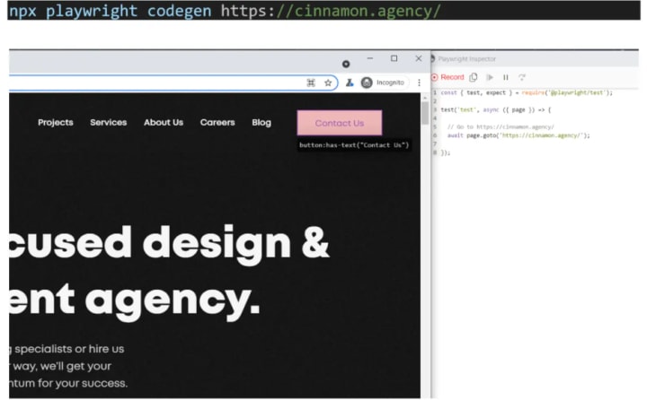 Then you would need to install Playwright by following the well explained procedure on their webpage. After you have done that, if you are new to the test automation and have issues identifying selectors it is best to use the integrated test generator to create a first test and start playing around with it in Playwright.