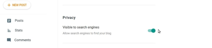 To make your blog visible to search engines or rank higher, enable visible to search engines under privacy settings option. This option will allow Google to index your URL.