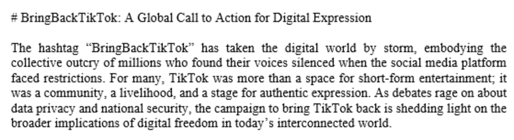 # BringBackTikTok: A Global Call to Action for Digital Expression