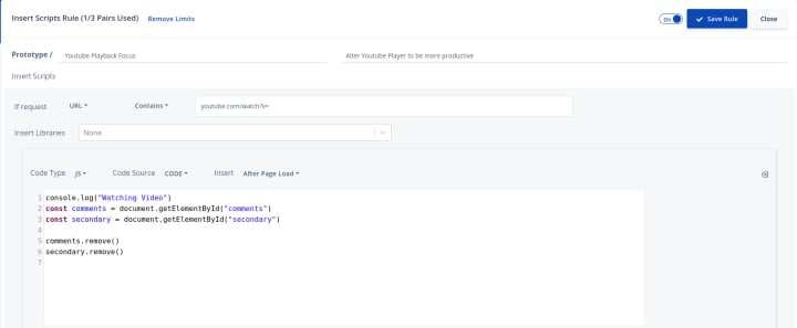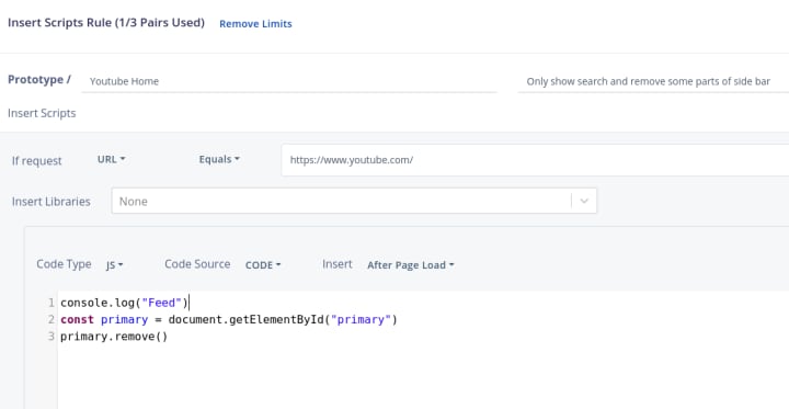 If you think about it, all I had to do was insert a script after page load. So I used an extension called Requestly. It helps me build Rules to do just about anything with a browser request and also insert scripts into a webpage.