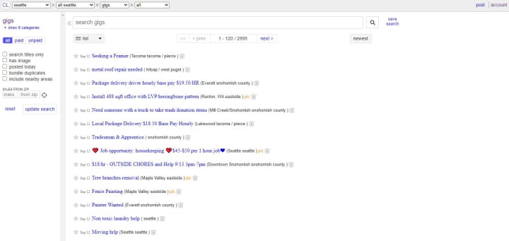 Craigslist Seattle is an extremely valuable resource for those of us who need quick cash—or those looking to score some free stuff. Even if you don’t need Craigslist as a job resource, keep reading as it really is the best site in the world. In this blog post, we will go over how it works and what some of the more successful posts have been.
