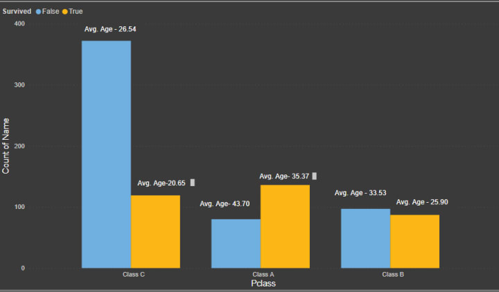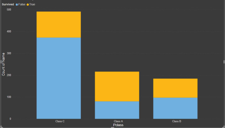 2. Again as we can see P-class is divided into 2 separate bars(Blue and Mustard)