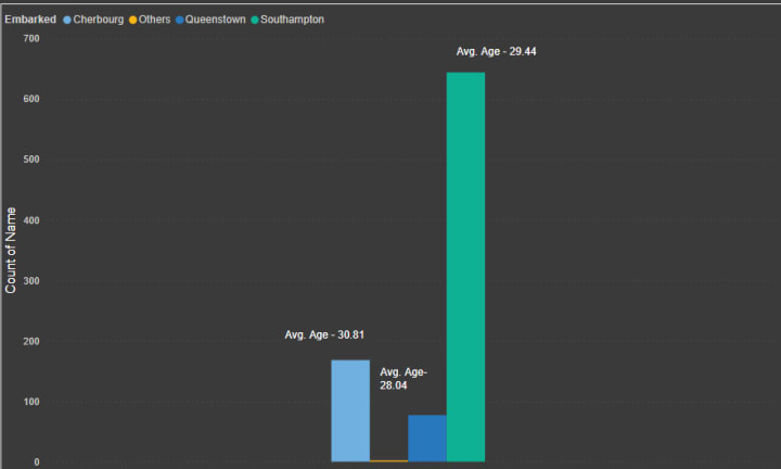 Infer 4:- We can see the average age of passengers from Southampton is 29.44, the average age of passengers from Queenstown is 28.04 and avg. age from Cherbourg is 30.81. We can see that the avg. age of passengers from each place doesn’t vary much and avg. age is around 29.