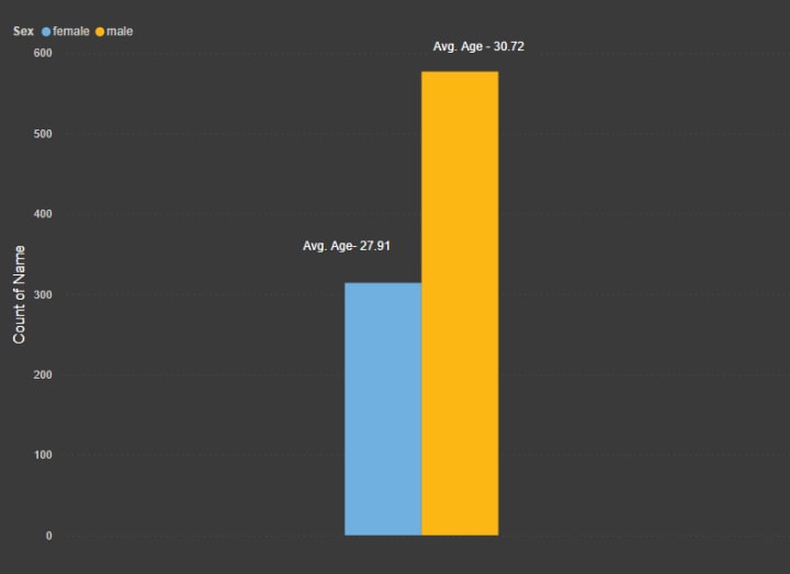 Infer 5:- We can see the average age of female passengers is 27.91, the average age of male passengers is 30.72.