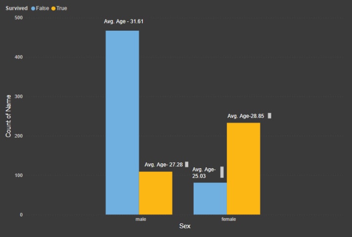 2. Again as we can see Gender is divided into 2 separate bars(Blue and Mustard)