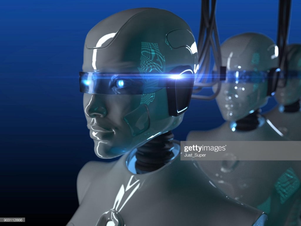 The HAL 9000 computer system in the film 2001 A Space Odyssey. It can see and communicate with people by speech.