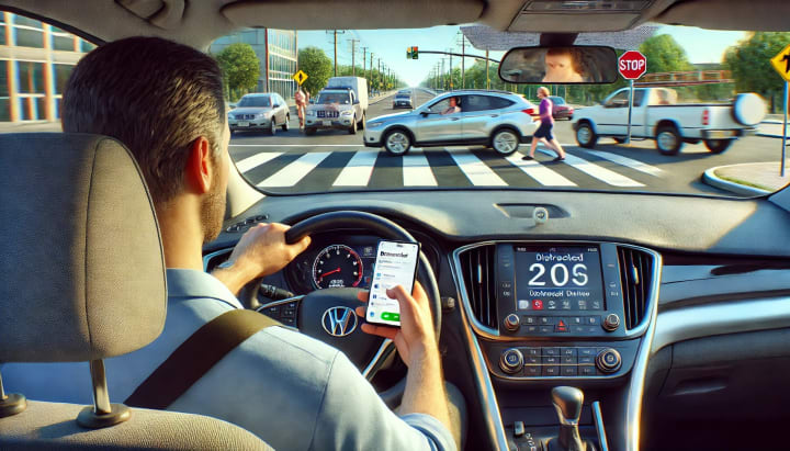 Reduced Reaction Time: Distractions make it harder to respond to sudden hazards, such as a stopped car or a pedestrian crossing the street.