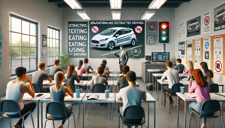 In addition to classroom instruction, driver education programs often include behind-the-wheel training to reinforce the importance of staying focused.