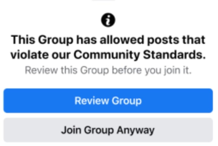 - Let people know when they’re about to join a group that has Community Standards violations.