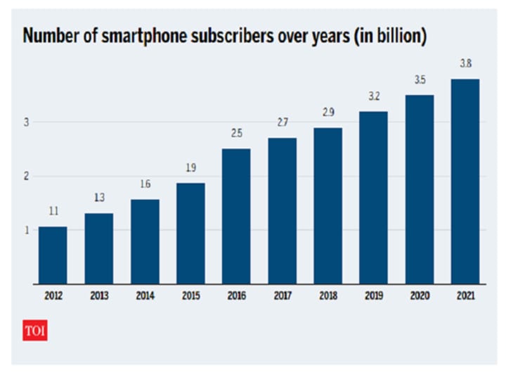 The number of smartphone users has already crossed the 3.8 billion mark worldwide, as per the Times of India report (an Indian newspaper). An average U.S. adult spends nearly 3 hours over a smartphone.