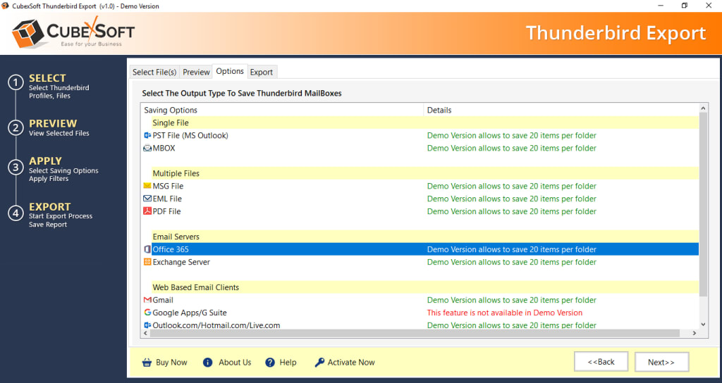 The application works independently, thus Thunderbird installation is not a mandatory condition. The software provides complete mailbox solution. It saves emails, contact, calendar and attachments in Outlook. The tool support to move Thunderbird folders to Outlook all editions such as 2019, 2016, 2013, 2010, 2007 and 2003. You can take help of demo edition to check performance working skills of the utility. The demo edition allows to move first 20 Thunderbird emails to PST for free.