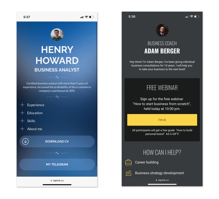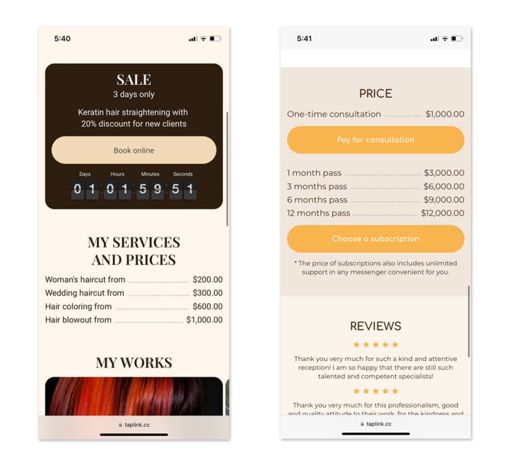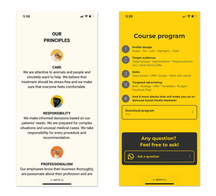 There are plenty of website builders on the Internet. That means, there is no need to ask programmers and designers to help you. As a rule, people prefer doing everything on the go. Therefore, I advise you to use a mobile-friendly website builder such as Taplink.