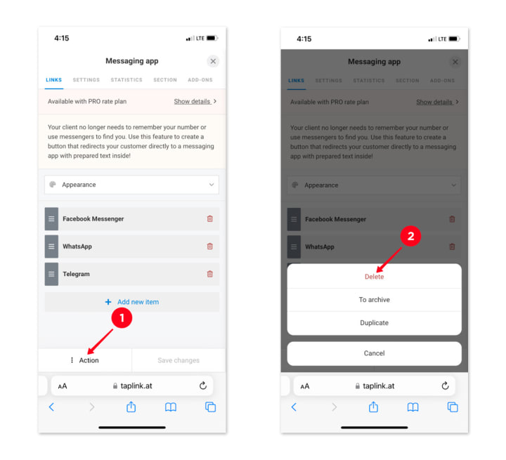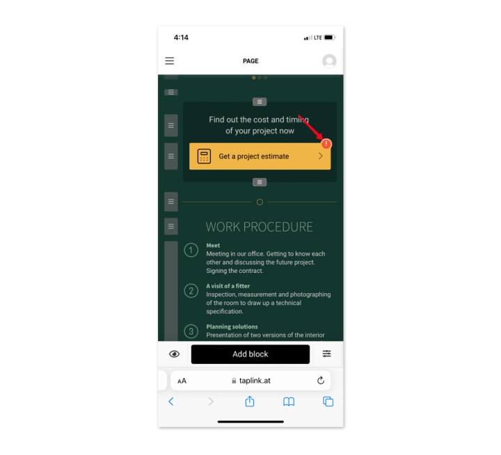 There can be semi-transparent blocks as well. This way, you need to upgrade your rate plan to get access to these features. Tap any of such blocks to see which plan you need - PRO or BUSINESS. If you think that you don’t need this block, you can just delete it.