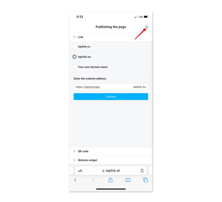 When you publish your website, look at the instructions on how to add it to your socials. Hit the cross to terminate creating your business website.