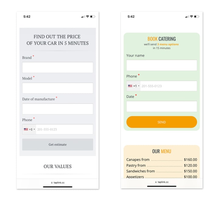 The main advantage of Taplink over other website builders is that Taplink is a mobile-friendly service. That means that pages load fast. And it’s the biggest difference between WordPress and Wix, which are made specifically for computers.