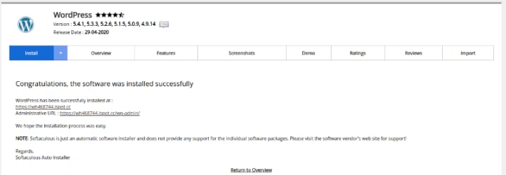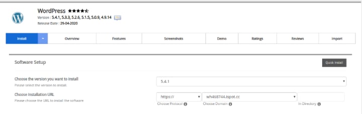 The first section Software Setup will be used to choose the version of WordPress to install, the URL of your website, and the folder where your installation will be. You can leave them as default.
