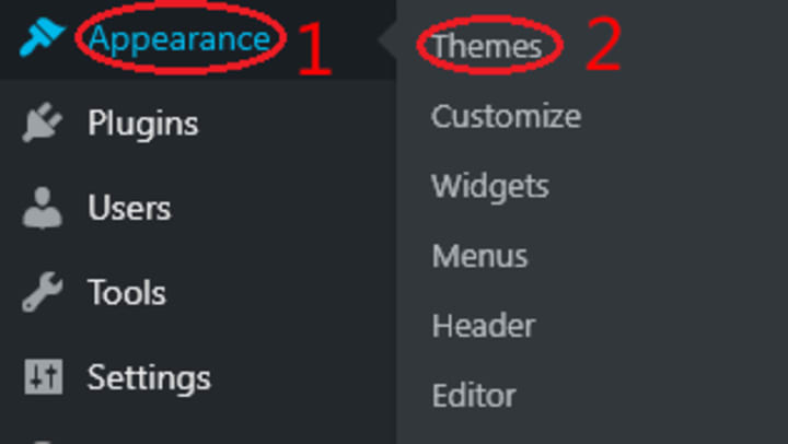 1. On WordPress Dashboard, point your cursor to Appearance, then click on Themes.