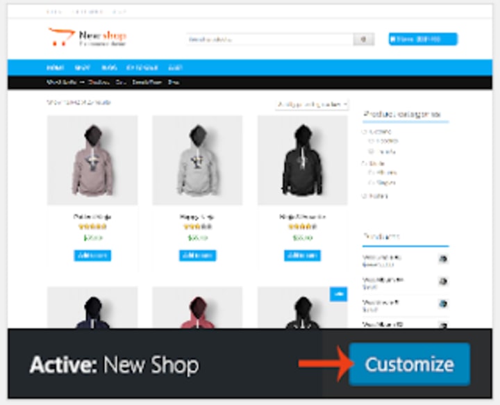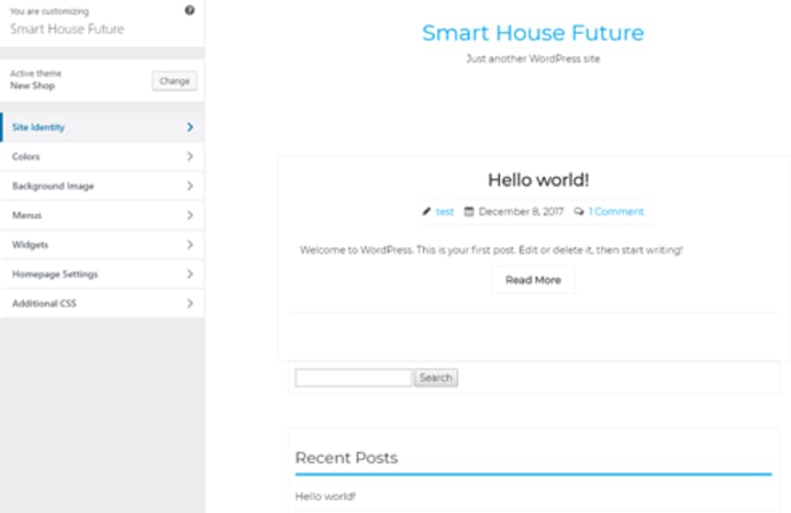 Go to Appearance > Customize. A live preview will open up; the website will look empty and very basic.