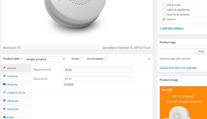 Let's create the following categories: Sensors, Security & Cameras, kits & hubs, and Lights & Appliances.