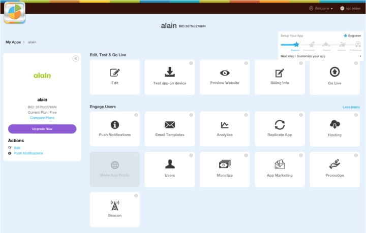 BuildFire is an application builder that allows you to develop and publish apps on iOS and Android without having to know how to code.The platform currently has over 10,000 active applications.BuildFire also provides custom development for a fee in addition to the App Building service.BuildFire's app builder helps you to create ecommerce, event, content, and religion applications. Their architecture is extremely high-quality.