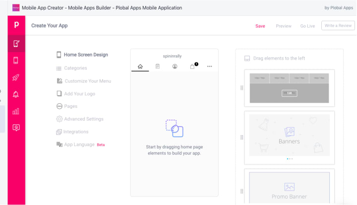 Plobalapps is a Shopify-integrated technology. This means that in order to use this app, you must have a Shopify account.Plobalapps has chosen to partner with Shopify, the world leader in e-commerce platforms, to provide its consumers with the ability to launch native apps from their Shopify store.The GUI is very user-friendly, with drag-and-drop functionality for accessing wind statistics and sending push alerts.Promotional banners, for example, allow you to view unique deals, which is one of their cool features.Likewise, there's the option of adding search filters. If you have a large number of products, this is very useful.The built-in payment gateways are identical to those used by Shopify, allowing for a wide variety of payment options.