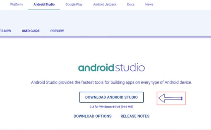 Go to the official site of Android Studio and click on the download Android Studio.