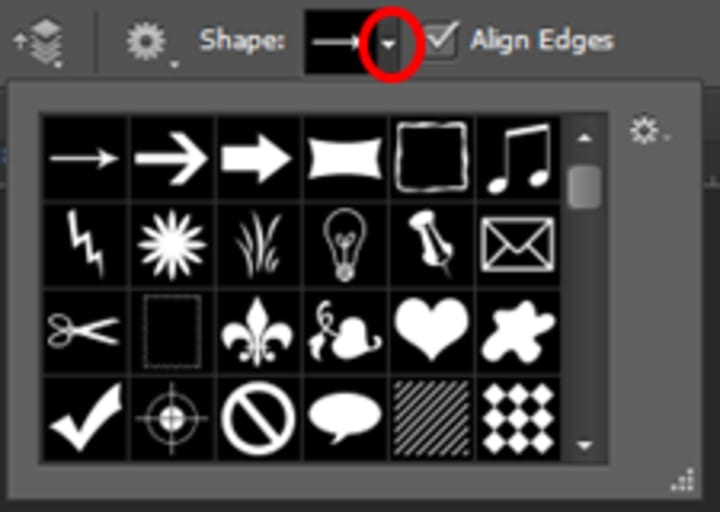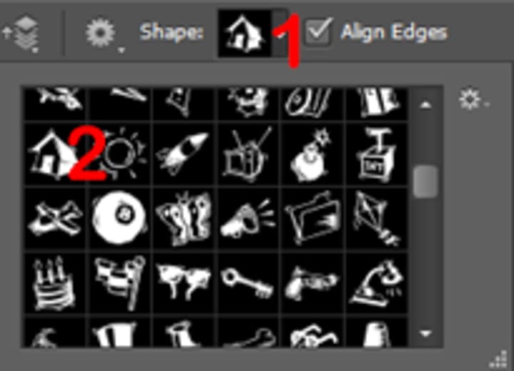 2. On the top, next to Shape, open the Custom Shape Picker.