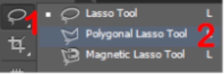 8. On the left side, with the right button of your mouse, click on Lasso Tool and select Polygonal Lasso Tool.