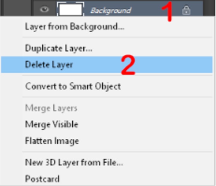 1. On the right side, with the right button of your mouse, click on the layer of the background, then with the left button, click on Delete Layer.