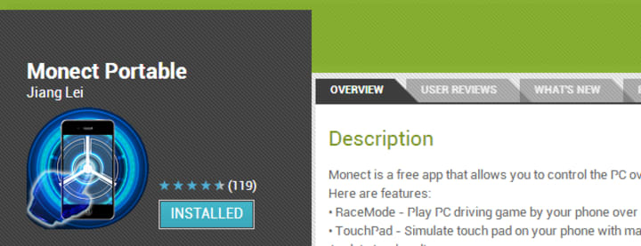 There are plenty of apps available in Google Player that let you use your phone or tablet as a wireless keyboard or mouse for a computer. Monect can be used in this way, but it also boasts a number of other options that cater to a variety of scenarios.