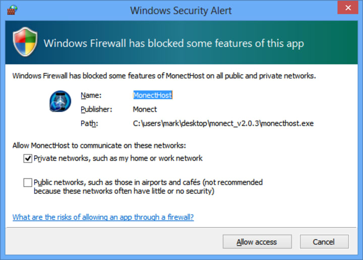 You’ll need to extract the contents of the zip file and then launch the file named MonectHost. You’ll probably find that your firewall kicks in and you’ll need to allow the program to make use of your network in order to continue.
