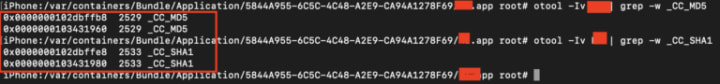 otool -Iv | grep -w _CC_SHA1