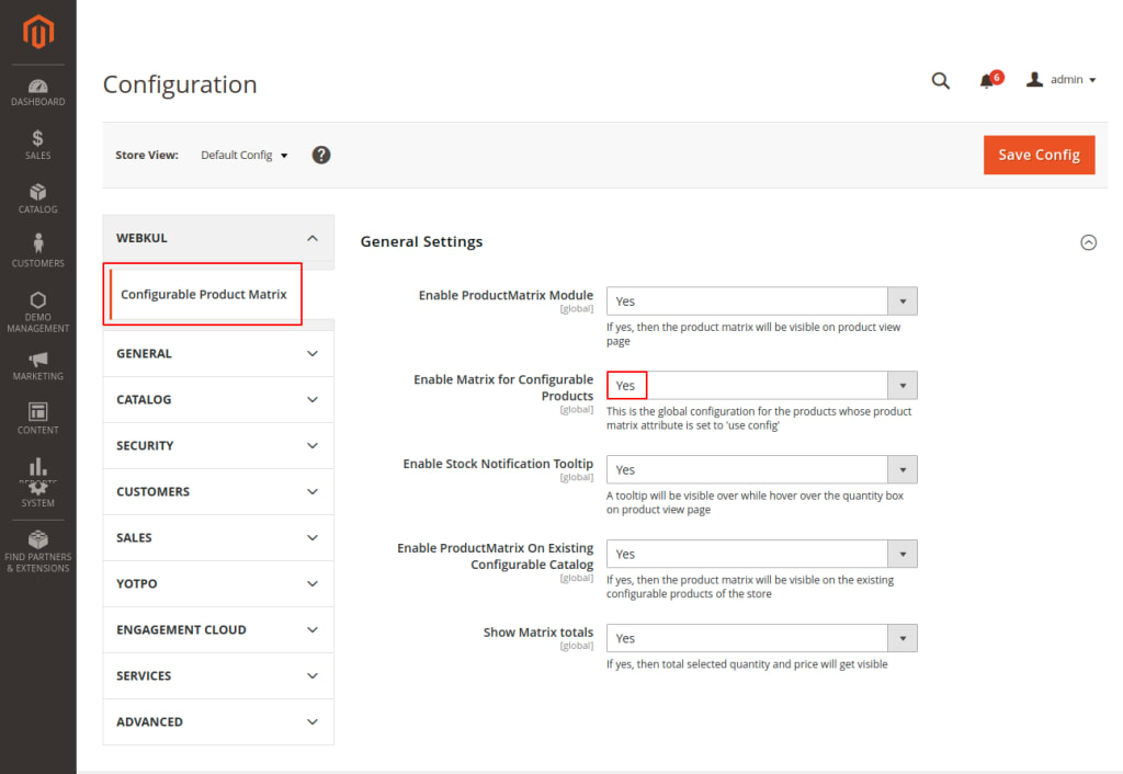 - Options to select which attributes of the configurable product to be displayed in a matrix view form