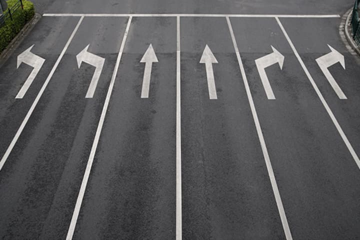 Turn Lanes and Arrows: Dedicated lanes for turning and arrows on the pavement guide drivers into the correct lanes for their intended movements.