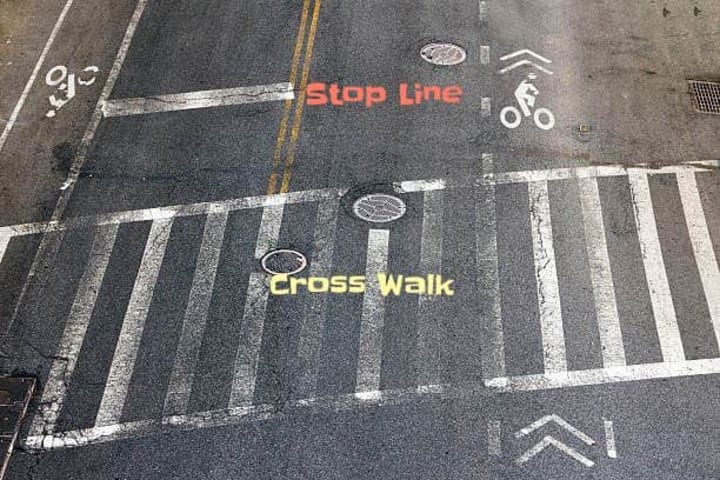 Crosswalks and Stop Lines: These markings indicate where pedestrians may cross and where vehicles must stop at intersections.