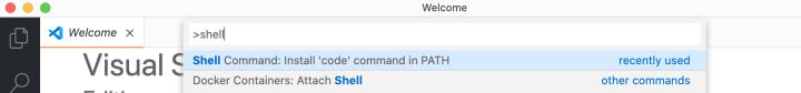 Click on "Shell Command: Install 'code' command in PATH'