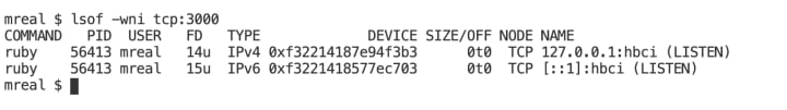 lsof -wni tcp:3000