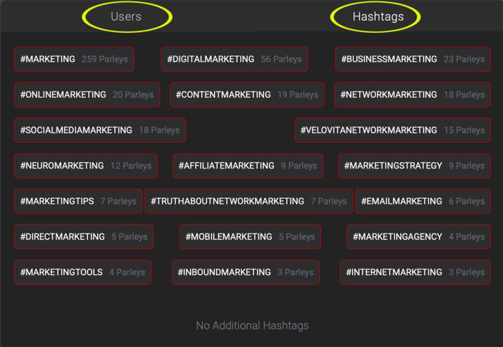 I work in marketing. If I find that #marketing is too flooded with content that's irrelevant to me, I can instead select #socialmediamarketing or #emailmarketing. Of course, I'd still include #marketing in my parleys because more generic hashtags have the most activity.