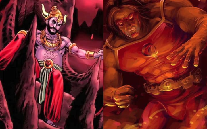 Grieved by his brother’s death, Surapadma summoned Simhamukha to win the war. Simhamukha, who earlier advised his brother not to wage war and instead accept an offer of peace, had no choice but to oblige. He appeared at the battlefield and, like a raging tornado, vanquished the devas’ army.