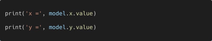 We can easily retrieve the decision variables' values. This can be done using the following commands: