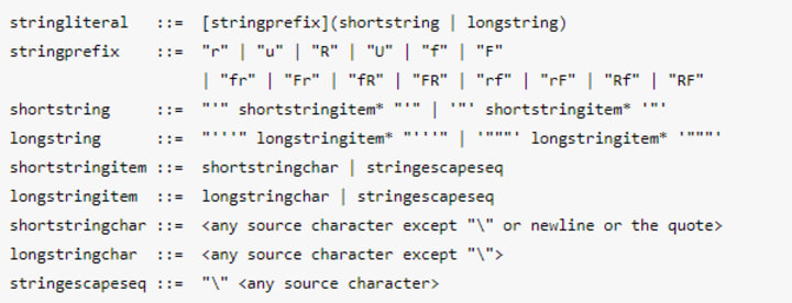 String literals are described by the following lexical definitions: