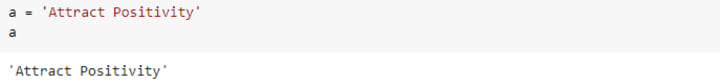 Here ‘Attract Positivity’ is a string literal. The variable a is a string variable, or, better put in Python, a variable that points to a string.