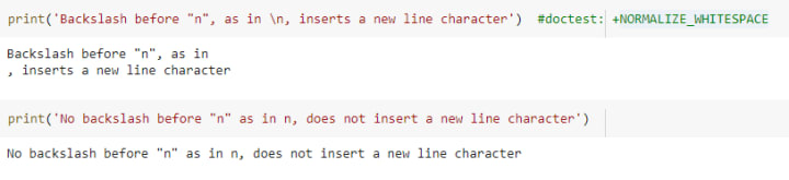 The new line character (\n) in Python is used to mark the end of a line and the beginning of a new line. If you do not give backslash before n then it will treat n as an alphabet and not as an escape character.