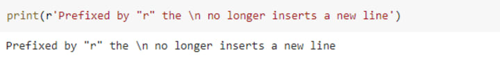 If you do not want the backslash to have this special meaning, prefix your string literal with ‘r’, meaning “raw”: