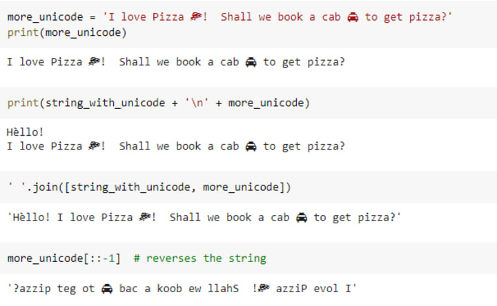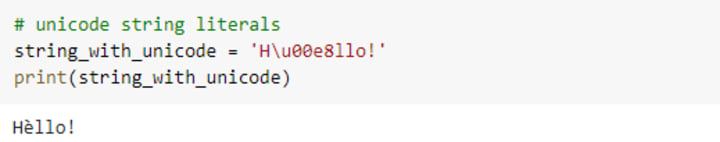 Note`e in the below unicode string literal: