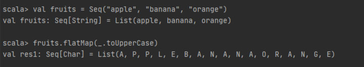 A collection’s flatMap method takes a function as an argument, applies it to every element in the collection, and returns a new collection for every element. The flatMap method is essentially a combination of the map method being run first followed by the flatten method. It can be demonstrated as:
